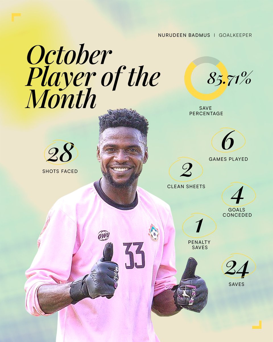 His run of form has continued into the new month, as Badmus was in goal when Kwara United defeated defending champions Remo Stars 3-1 in their first game in November.